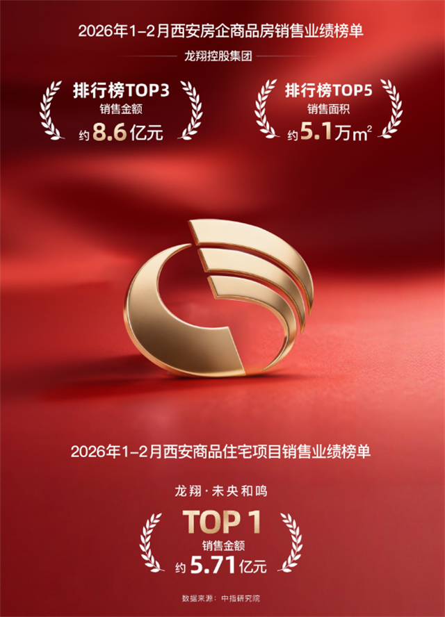 龙翔控股集团,28载布局全国6省14城,始终以“中国至美生活开拓者”为定位,步履不停筑造精品。2020年首入西安,6载深耕硕果累累,摘地18宗、落子11盘,荣膺2025年西安房企销售业绩TOP8,更是跻身2026年1-2月西安商品房销售业绩TOP3,业绩持续攀升。从龙翔·奥城珑樾府九开九捷,到龙翔·奥城云玺四开四罄,再到龙翔·未央和鸣的高燃开局,龙翔“红盘缔造者”的标签愈发亮眼。